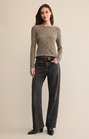 Soft, lived-in, and head-turning, in the best way. This fitted waffle thermal has a mini leopard print, raw edges, and a mineral wash that gives it a naturally relaxed yet elevated feel.