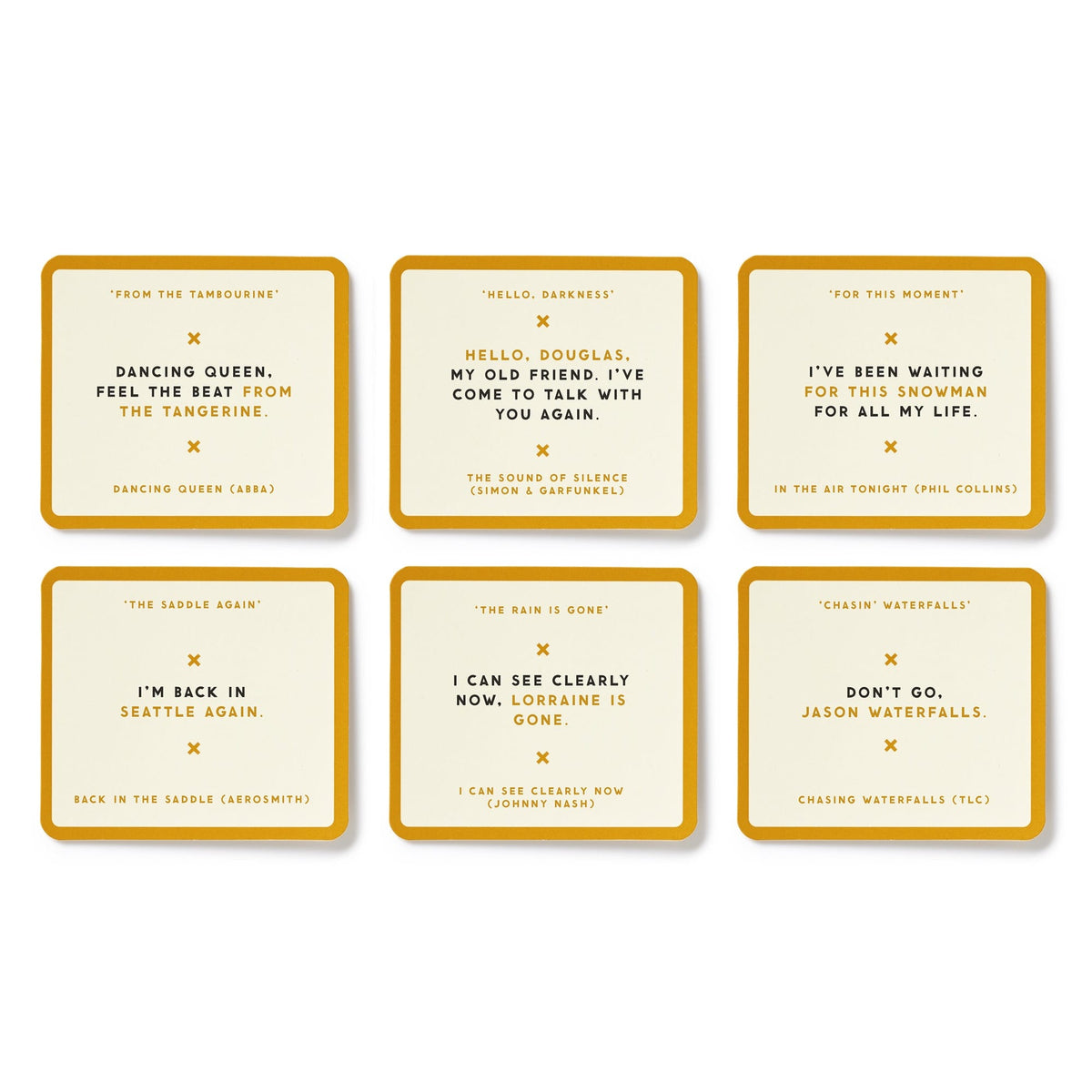 A party game all about identifying songs–from the most wildly incorrect lyrics possible. As it turns out, sweet dreams aren’t actually made of cheese. Sometimes misheard song lyrics actually make more sense than the real ones–and that’s the inspiration for this game. Compete with your friends to identify popular songs from the most entertainingly incorrect lyrics possible. For example: ‘I’ve got two chickens to paralyze.’ Psst, it’s ‘Two Tickets to Paradise’ by Eddie Money.