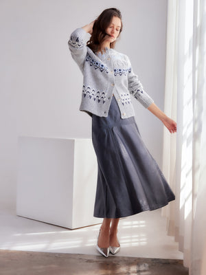 The Bronwyn Faux Leather Midi Skirt brings modern edge to a classic silhouette, crafted in glossy faux leather with paneled seaming and double topstitch details that add subtle texture and definition. Designed with a flattering midi length, two side pockets, and a concealed back zipper closure, it offers structure with graceful movement.