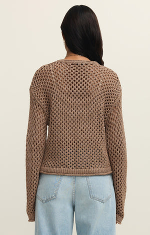 The Cala Shimmer Crochet Sweater combines airy open knit construction with understated shimmer for an effortlessly polished look. The delicate sparkle adds just enough luminosity without overwhelming, while the relaxed weave ensures breathable comfort. A perfect layering piece.