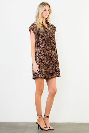 Liven up your wardrobe with this new cheetah dress from THML. This funky dress features a larger, squarer shoulder which tapers in at the waist for a structural and sculptural beauty! Finishing touch is a slightly ruffled collar.