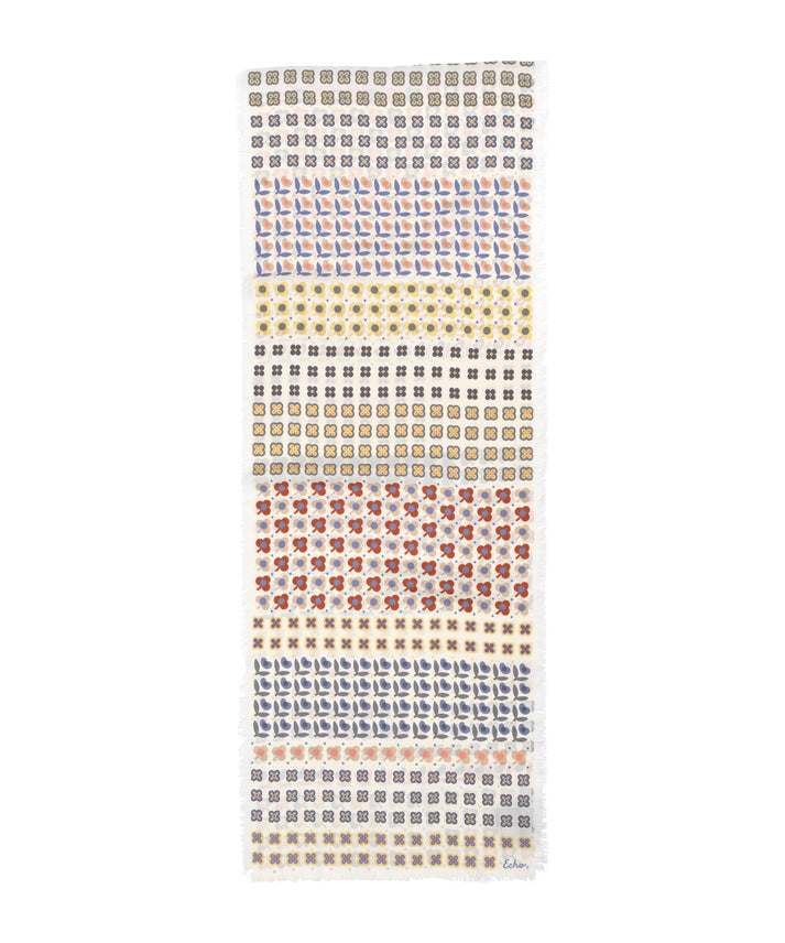 A small-scale geometric floral combines with bold color to create a rhythmic, graphic design that's as expressive as it is energetic. Printed on 100% silk and finished with a self-fringe, this piece adds a vibrant touch to any warm-weather look.