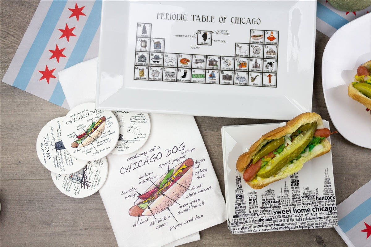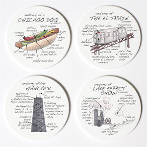 Save your surfaces and show your love for Chicago at the same time with these new coasters from Dishique! In a sleek square shape, enjoy 4 designs that each represent classic Chicago staples. Backed in cork and bundled with love, these coasters make gift giving a breeze. Learn a thing or 2 the next time you cheers a glass!
