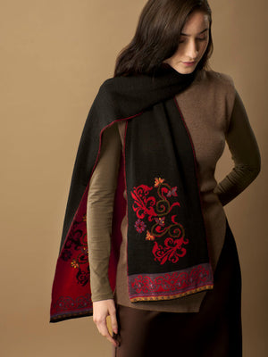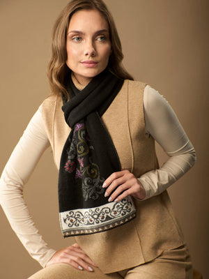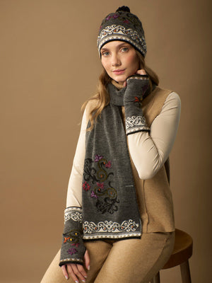 Enjoy this beautiful knitted alpaca scarf from Wuaman. This reversible floral scarf features embroidery on both sides and come in a variety of gorgeous colors. Pair with the beanieand hand warmers for a striking set!