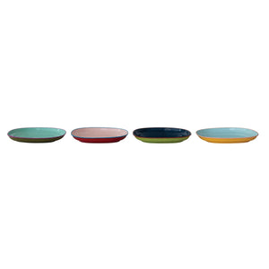 Add a pop of color to your decor with this 4 plate set from Creative Co-op. These square plates have rounded edges which also have a contrasting color for a fresh and modern design.