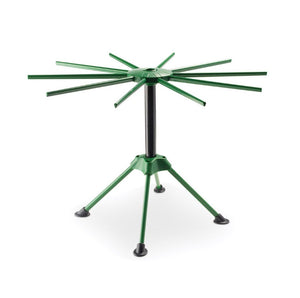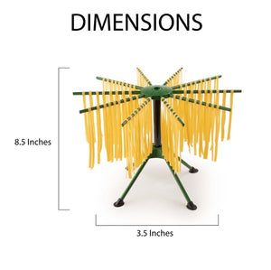 Fante's Cousin Lucia's Collapsible Pasta Drying Rack is perfectly sized for cramped kitchens and smaller spaces, offering ample drying capacity for all types of long noodles and homemade pastas. Fresh pasta can be dried in advance for future use or hung temporarily to keep strands from sticking until the cooking pot is ready. The rack features 10 built-in dowels that fan out quickly to create generous drying space, each measuring 6.5-inches long. The included 7-inch multipurpose transfer wand easily lifts and moves freshly cut pasta to the rack or cooking pot, then stores neatly in the central column when not in use. Ideal for drying spaghetti, fettuccine, angel hair, linguini, long fusilli, lasagna, pappardelle, tagliatelle, tagliolini, bucatini, mafaldine, lo mein, soba, udon, wide rice noodles, and more, this collapsible design folds down quickly for compact storage.