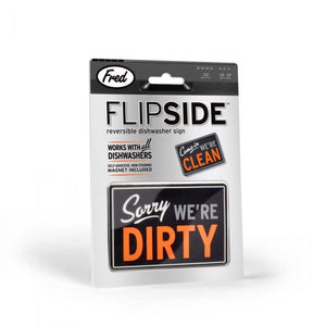 Are those dishes clean or dirty? Save yourself the trouble of constantly opening and closing the dishwasher door - check the sign instead! Fred's FlipSide reversible magnetic plaque keeps you in the know with a mere flick of the wrist. FlipSide comes comes with a rare-earth magnet backed with non-staining adhesive. Just pop the magnet on your dishwasher door, and Flip Side will hold strong. Works on any dishwasher door. Self-adhesive, non-staining magnet included.