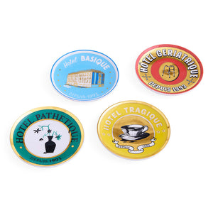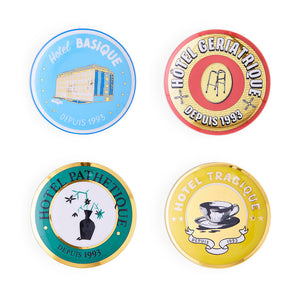 The wink every jet setter's cocktail hour is begging for: hotel-branded dishes and trays that they don't sell in the gift shop (but end up in your bag at check-out). Think classic Victorian-inspired graphics gone off-map on a tour de Tragique, Basique, Pathetique, and Geriatrique. Crafted from high-fired porcelain, each set is packaged in a nifty gift box. The perfect hostess present (or pick-me-up for yourself).