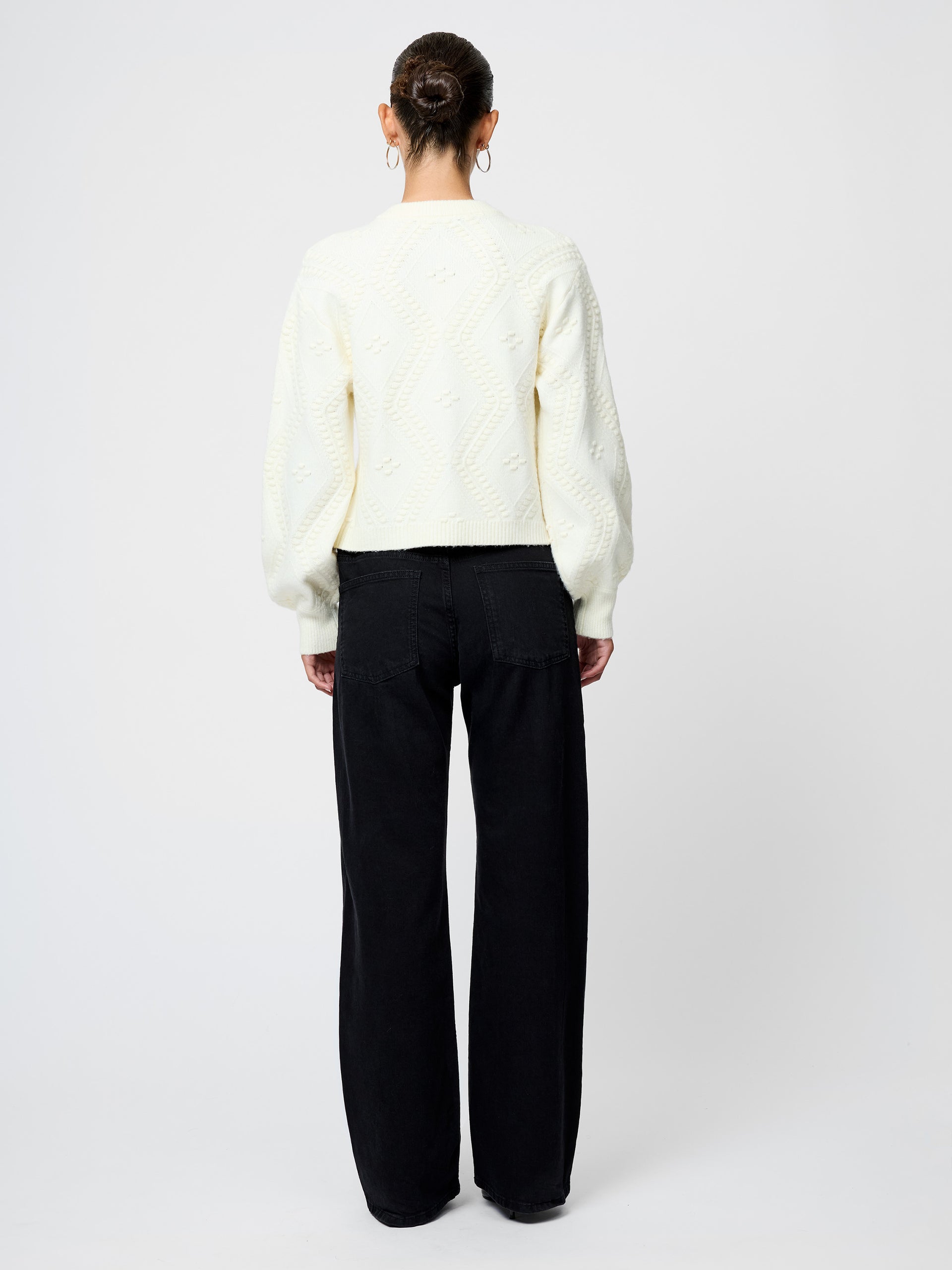 Your knitwear collection just got sweeter. The Kitty Bobble Contrast Cardigan combines timeless texture with a touch of playfulness. Its soft bobble knit and statement velvet bow bring a feminine finish to classic coziness.  Perfect for dressing up your everyday denim or pairing with a sleek skirt for the season’s soirées.
