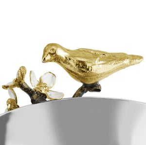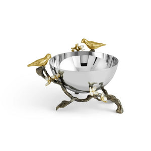 The Lovebirds Nut Bowl celebrates love and connection in a beautifully handcrafted design. Sculpted birds perch upon a branch, symbols of devotion and growth, while delicate blossoms evoke unity and innocence.