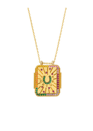 The LUCKY HORSESHOE PLAQUE necklace from MYA BAY is style, good vibes… and a hint of magic.