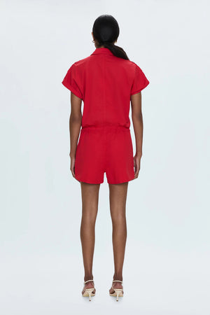 The Meg is a field suit short with a zipper front closure, epaulettes, and a drawstring at the waist for the most flattering fit every time. Wear the drawstring tied for a cinched look or have it relaxed and undone. This easy style makes the ideal vacation outfit with an airy fabric that has a touch of stretch.