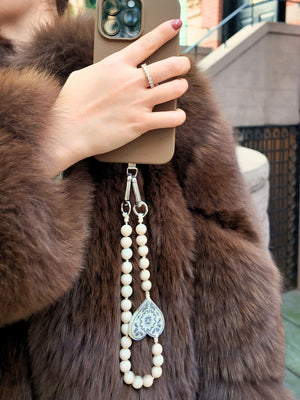 Each chain features over 40 natural gemstones and a hand-painted charm, designed by our Solar Eclipse artists in New York. The universal stainless steel insert works with most phone cases, so you can clip it on and go—no special case needed.