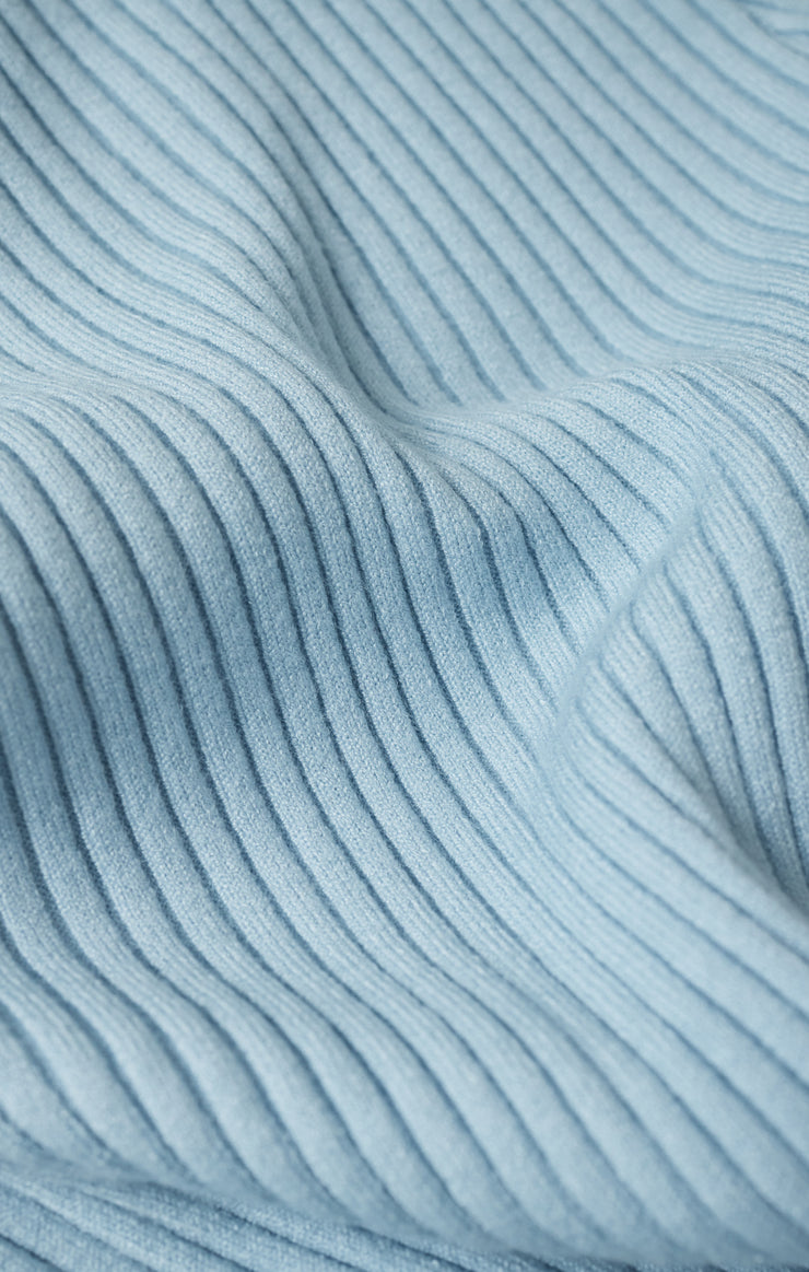This ribbed cardigan features a feather fine sweater knit, crew neck, and button front. Pair with wide leg denim and you’re all set.
