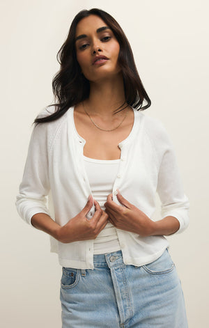 This 100% cotton cardigan was made to layer day to day. Keep things easy with its button front and crewneck style. Wear with a simple rib tank and your favorite denim.