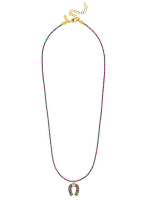 The PURPLE MINI HORSESHOE necklace by MYA—BAY is gilded with 24-carat recycled fine gold . Its mini horseshoe pendant is adorned with purple enamel, for a mystical and bold touch. With its length of 39 cm + 5 cm of extra chain , it is worn close to the neck, with delicacy. A strong symbol in a very fine format.