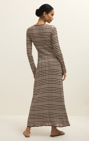 With day to night versatility, this maxi dress is an instant favorite with its ribbed fabric, long sleeves, and tonal stripe print. It’s comfortable and chic, which is always our favorite combo.