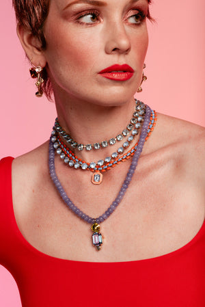 Get lost in the dreamy colors of the Selenna Necklace from Tova! Show off your personality with its antique gold plated brass base metal, high quality crystals and beautiful beads add an extra touch of glam. 17" in length and 3.5" extension.