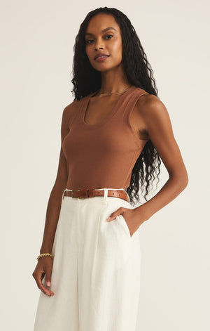 Z Supply's Sirena Rib Tank is made in a Premium Feather Rib fabric. Featuring a soft scoop neckline with rib details at the neck and arms.  We love this fitted tank tucked or untucked into your favorite jeans or cargo pants.