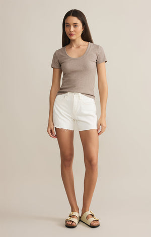 A new silhouette in Z Supply's Essentials, the Sirena Short Sleeve Tee is an instant classic. Made from their Premium Feather Rib fabrication, this updated version of the Serena Tank fits close to the body and has cap sleeves.