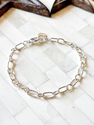 The Soho Bracelet features alternating handcrafted sterling silver oval links in subtly different sizes, creating a substantial and contemporary look. Perfect for everyday wear or use it as a host for your beloved charms.