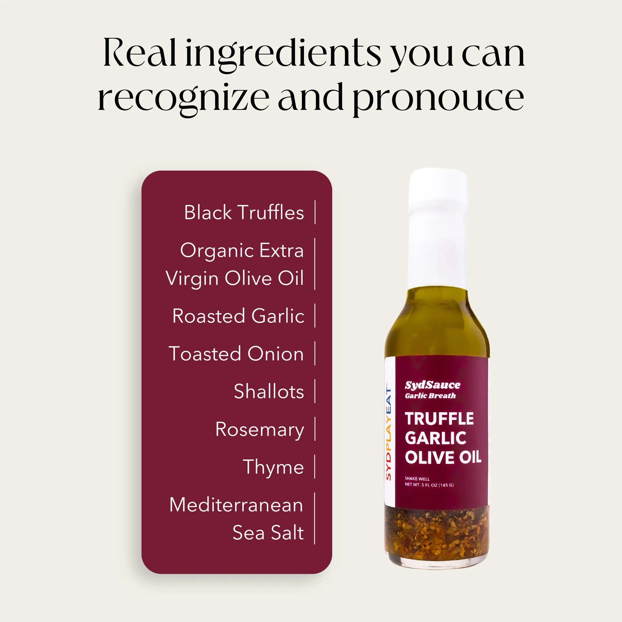 Whoever thought garlic breath could be so inviting? Dive nose-first into this SydSauce. We combine the savory flavors of garlic, onion and shallots with black truffles and roast it in organic olive oil, making it the ultimate addition for any foodie looking to elevate their eating and cooking game.