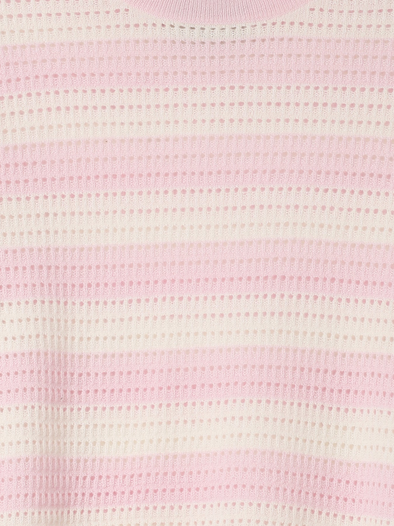 Soft fabric meets soft pink hues in this beautiful striped sweater from Jumper 1234. You'll love the feel of the open knit design which adds a breathable texture to this cozy look.