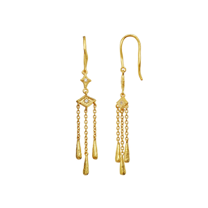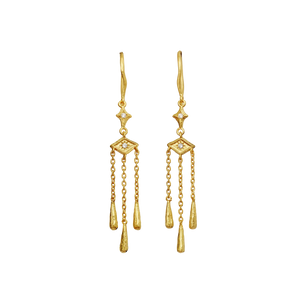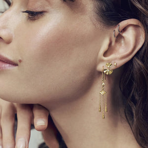 Three is a magic number, and it is testified by the Trio Earrings from Maanesten. With a trio of delicate chains and drops that fall in harmonious balance, they float effortlessly like a light enchanting melody.