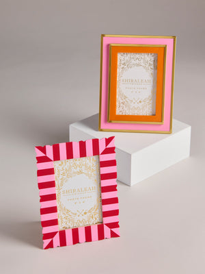 Add a pop of playful charm to your space with the Viva 4" x 6" Cut Edge Picture Frame. Featuring bold, candy-colored stripes and a wavy edge detail, this frame is anything but ordinary. Whether you choose the vibrant red and pink combo or a fun mix of green and blue, each one delivers a dose of cheerful personality. Designed to stand out, this frame is a celebration of color and whimsy for your favorite memories.