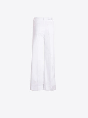 These Vilagallo white jeans are a crisp wardrobe essential with an effortlessly tailored feel. Designed with a flattering high-rise waist and a wide-leg silhouette, this polished pant features subtle utility-inspired front patch pockets and finished hems for a clean, modern look. Lightweight yet structured, it’s perfect for pairing with colorful tops, statement blouses, or classic knits all season long.