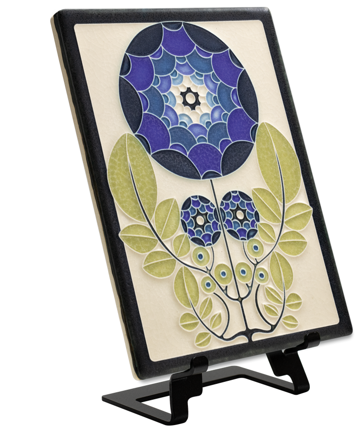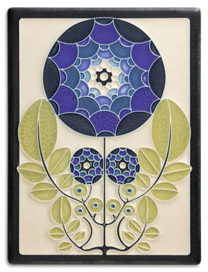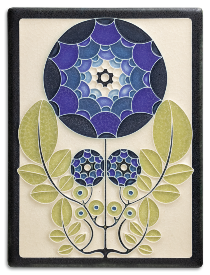 Dahlia, a mesmerizing floral is Motawi’s take on take on a Gustav Marisch postcard published by the Wiener Werkstätte circa 1912.