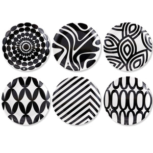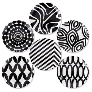 Add some graphic fun to your outdoor dining with the Black & White Appetizer Plate set from French Bull. These striking plates are perfect for poolside dining, serving snacks, finger foods, desserts and appetizers. Each plate is a unique design and comes in a beautifully packaged gift box. Crafted from high-grade, glazed melamine which is scratch and shatter resistant, non-absorbent, and BPA-free.