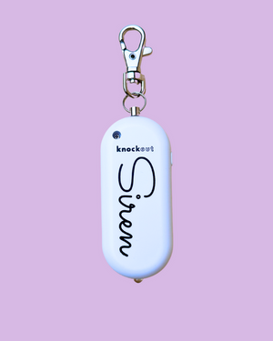 The Knockout Siren™ personal safety alarm is rechargeable, easy to use, loud, and TSA approved.