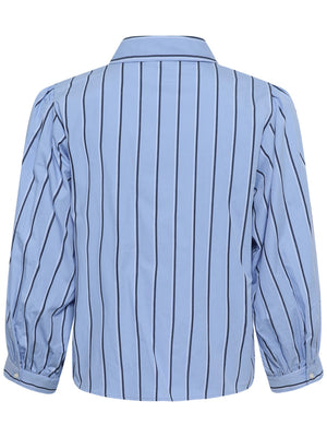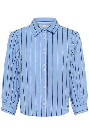 Elevate your wardrobe with this Part Two Anais Shirt in a sophisticated blue palette. Featuring a flattering feminine cut and classic button-down collar, this versatile piece combines timeless style with modern comfort. The three-quarter sleeves offer the perfect balance between coverage and breathability, while the refined striped pattern adds visual interest to any outfit. Ideal for layering or wearing solo, this shirt transitions effortlessly from office to weekend wear.
