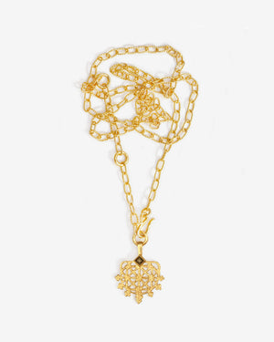 This statement piece features the Hittite sun disc pendant: an intricate openwork motif honoring the Sun Goddess of Arinna. Set into the crown of the pendant is a princess-cut Smoky Quartz, representing grounding and protection.