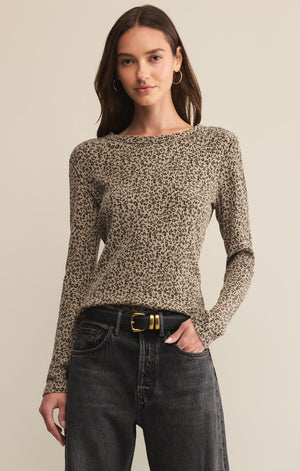 Soft, lived-in, and head-turning, in the best way. This fitted waffle thermal has a mini leopard print, raw edges, and a mineral wash that gives it a naturally relaxed yet elevated feel.