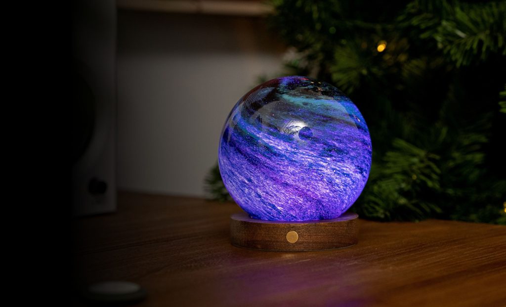 Immerse yourself in a world of color with our exquisitely hand-blown and hand-painted AstraGlass Light. As the RGB hues shift, this artisanal glass orb transforms, unveiling a breathtaking new visual with every color change. Each glow is a masterpiece—soft, ethereal, and utterly mesmerizing. Whether casting a cosmic ocean blue, a warm golden radiance, or an enchanting galaxy red, this light is more than just illumination; it’s an ever-evolving art piece, bringing magic and wonder to any space.