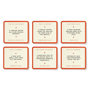 A party game all about identifying movies–from the worst descriptions humanly possible. Has your mom ever tried to explain a film that she just watched? Did it make one ounce of sense? Of course not–and that’s precisely the inspiration for this game. Compete with your friends to identify popular movies from the most convoluted movie summaries possible. For example: A goose suddenly dies and it makes everyone really depressed. Psst, it’s 'Top Gun.'