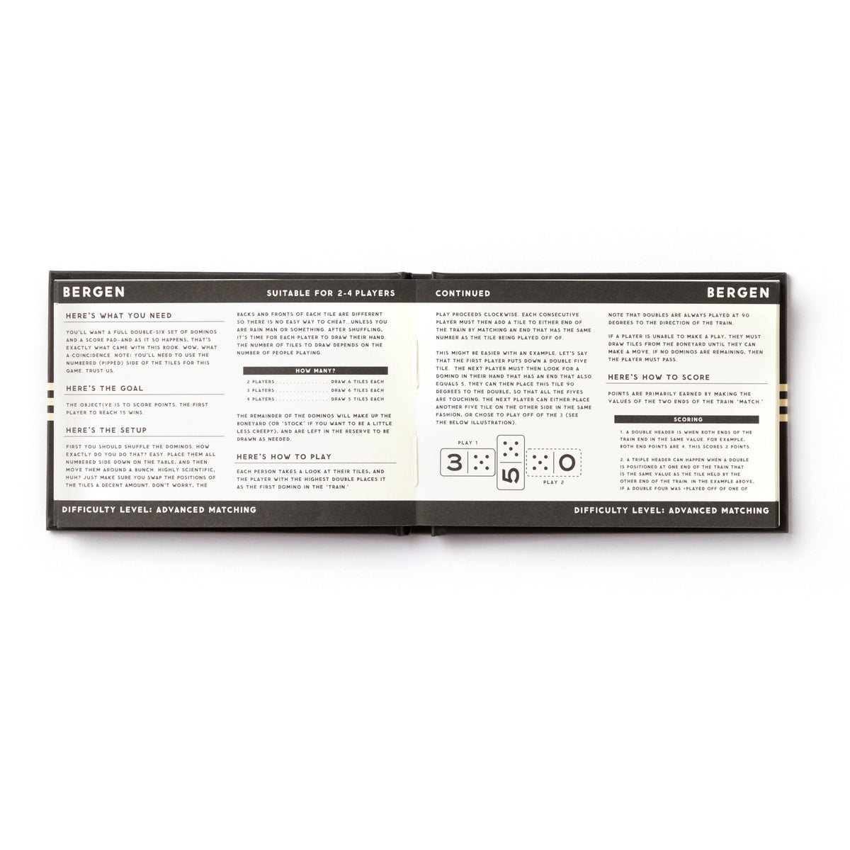 • Features an instruction book that explains how to play 15 different games in detail (from Bergen to Matador – and everything in between).