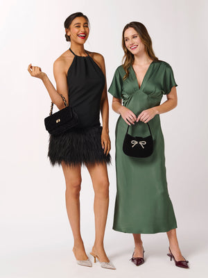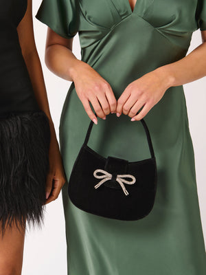 Say hello to your new favorite party companion—the Bowden Mini Bag! This compact cutie features a plush velvet body, a sturdy single handle, and an oh-so-satisfying snap closure. The sparkling rhinestone bow detail adds just the right amount of glam, while the interior slip pocket keeps your must-haves neatly tucked away. Whether you’re headed to cocktails or a holiday soirée, this bag is made to shine.