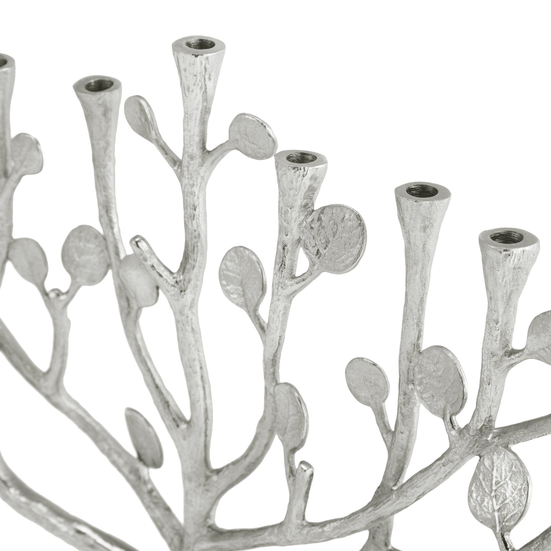 Celebrate Hannukah with a botanical touch. This Botanical Menorah from Michael Aram features a branching tree of life design, complete with budding leaves which flicker under the glow of the lit candles. With a study marble base, this menorah can easily be passed down through generations as a timeless heirloom.