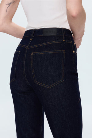 The silhouette that gets straight to the point. Bri sits confidently at a high rise and features a slim straight leg that hits at the perfect ankle length, finished with a 28" inseam. Nightfall brings mysterious sophistication with its deep dark wash that captures the allure of midnight.