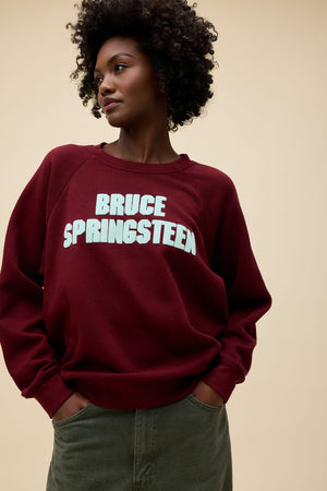 Rep the unforgettable era of Bruce Springsteen's anthemic sound. The Boss' name is hand-flocked onto our Vintage Raglan Sweatshirt honoring the American spirit he sparked.