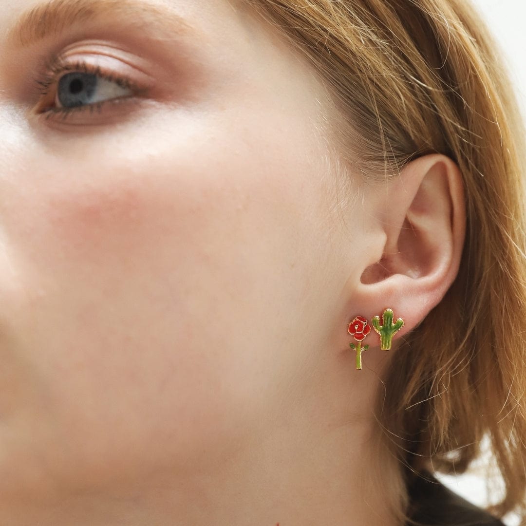 Add some quirk to your look with the Enamel Cactus and Desert Rose mismatch earrings from Tai. These playful earrings are the perfect pair to show off your fun side!