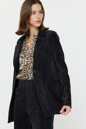 Current Air's Corduroy Blazer is a fall closet staple. A clean cut and cozy layer perfect for elevated everyday styling. The silhouette is fitted, finishing at hip level. With a button front closure and welt pocket detailing.