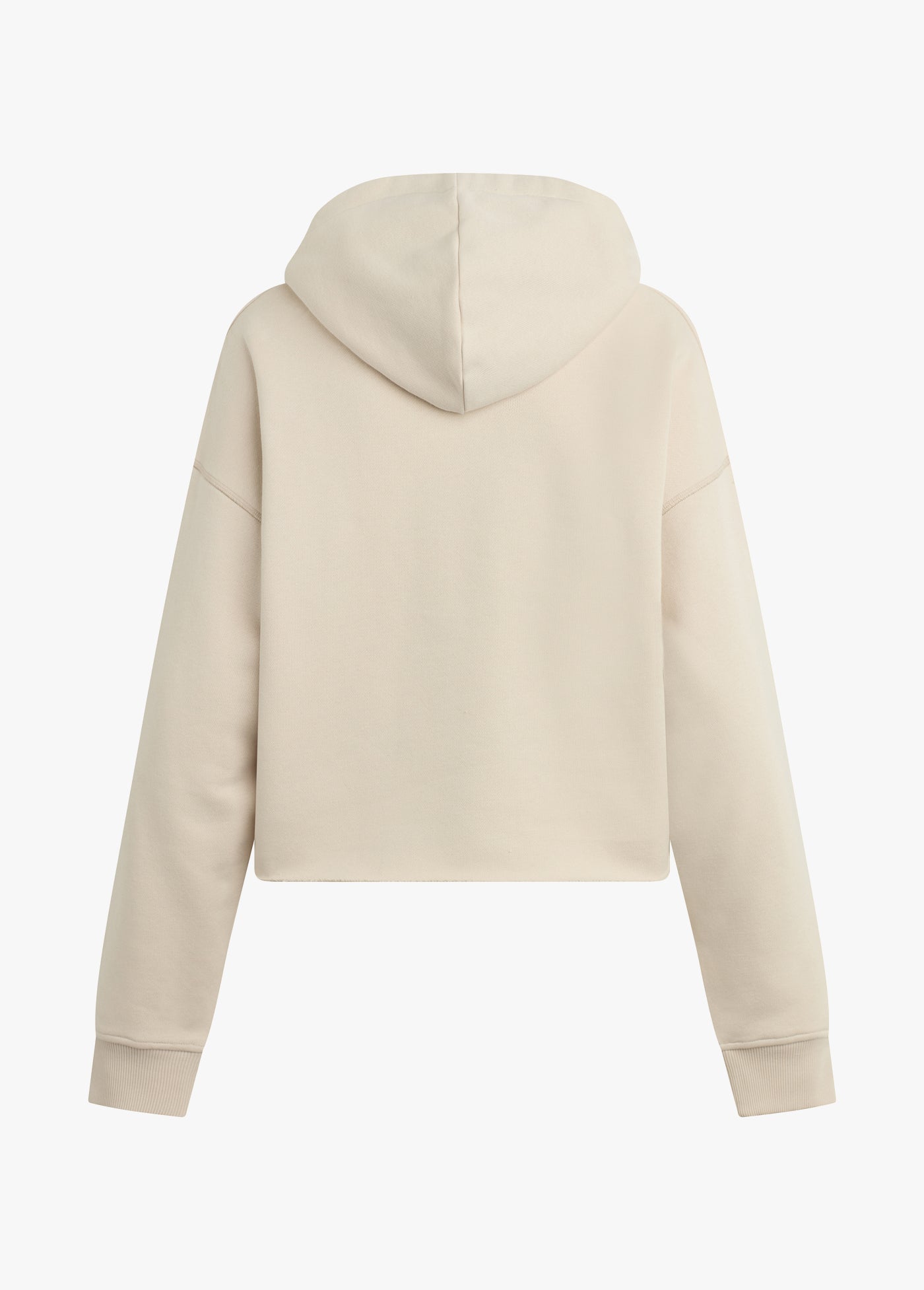 The hoodie that majors in comfort and minors in cool. Cropped with a raw hem that rolls just right, plus a relaxed fit, drop shoulder and your favorite logo.