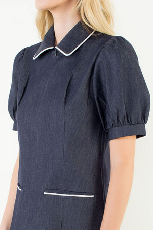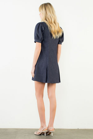 Rock a classic denim look in this charming mini from THML. With a casual yet chic vibe, elevate your style with the puff sleeves, adding a touch of volume and flair. On-trend with the zip front detail, offering a modern and edgy touch.