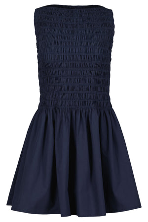 A charming warm-weather mini, the Emilie Boatneck Mini features a smocked bodice and gently flared skirt for a flattering, easy fit. Lightweight and breathable, it’s designed to move effortlessly from day to night. Style it with flat sandals and gold jewelry for daytime polish, or elevate it with espadrilles or heels for an evening look.