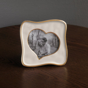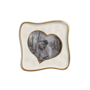 If you're looking for unique gift ideas for your sweetheart, consider the lovely Encanto Curved Heart 5 x 5 (Cream) from Beatriz Ball. Notable for its abstract shape, and asymmetrical heart-shaped opening, this precious 5x5 inch frame is handcrafted and strikingly presented in colorfully enameled metal rimmed in gold.