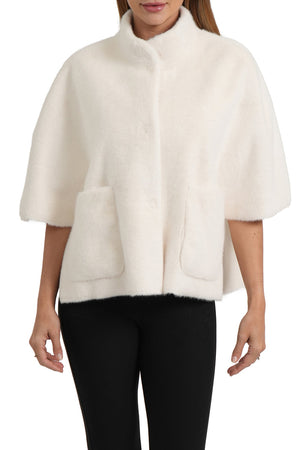 The perfect accessory for a night out! This luxurious faux fur bolero features elbow sleeves, 3 snap buttons to wear closed, and 2 patch pockets. Wear it over a dress for date night or with jeans or faux leather pants to keep it casual, it's sure to become your go-to piece.